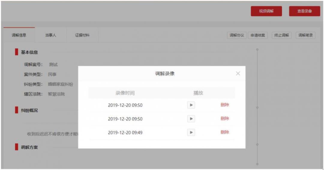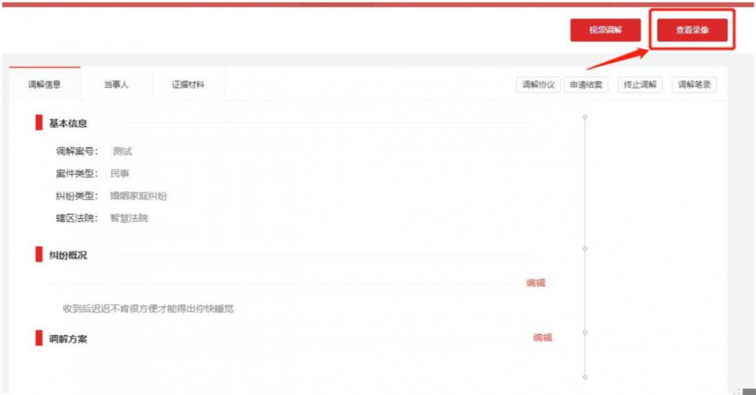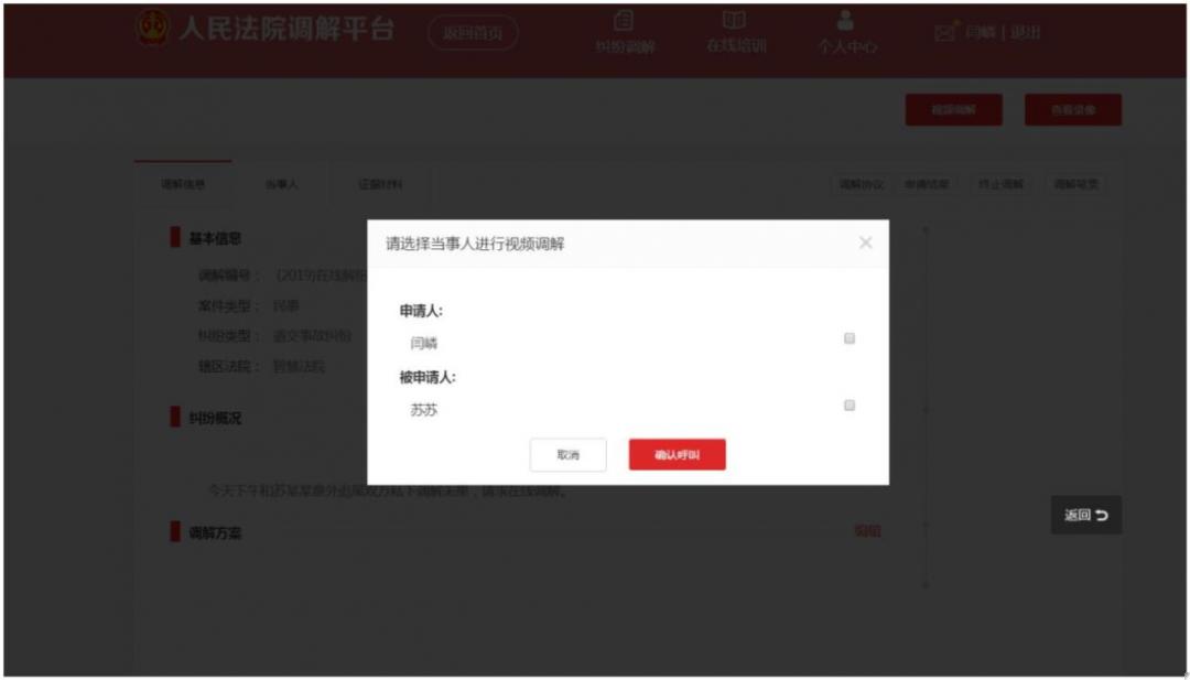 調解員在網頁客戶端,可通過“視頻調解”按鈕發起視頻調解。